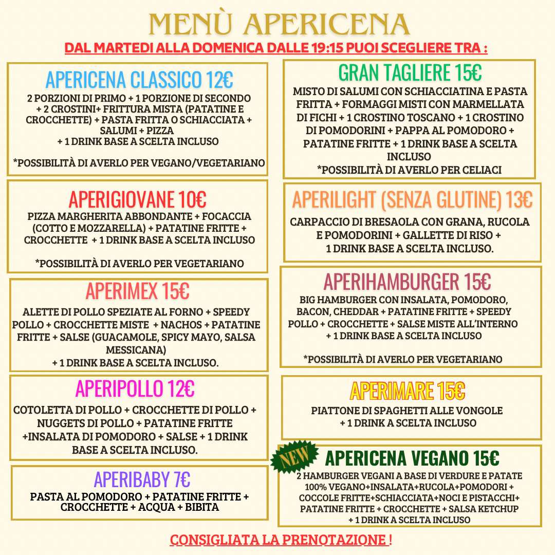 Dalla colazione con paste appena sfornate ai pranzi caldi con cucina casereccia, merende golose e apericena con un menù composto da piatti unici e abbondanti con drink incluso.